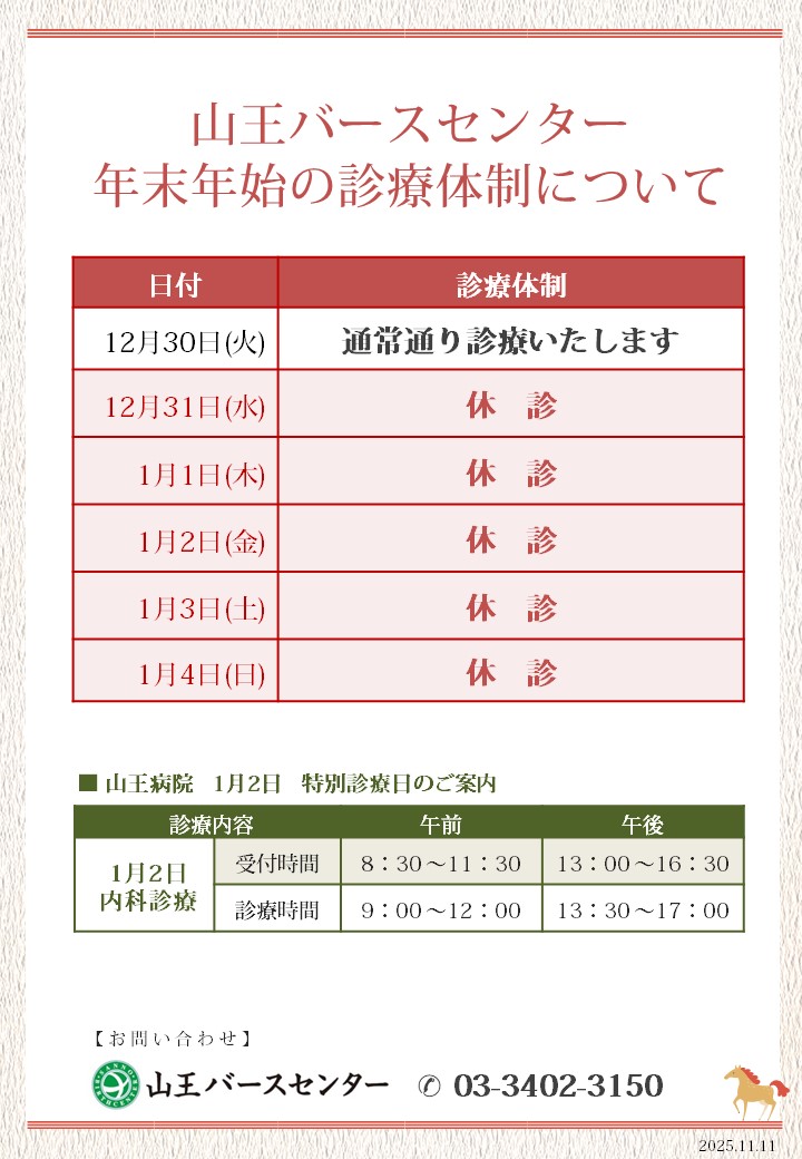 年末年始の診療体制について